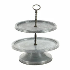 - A 2 tier server carries a round tray like base with large ring handle for easy transport