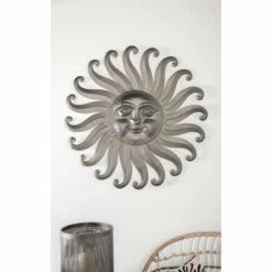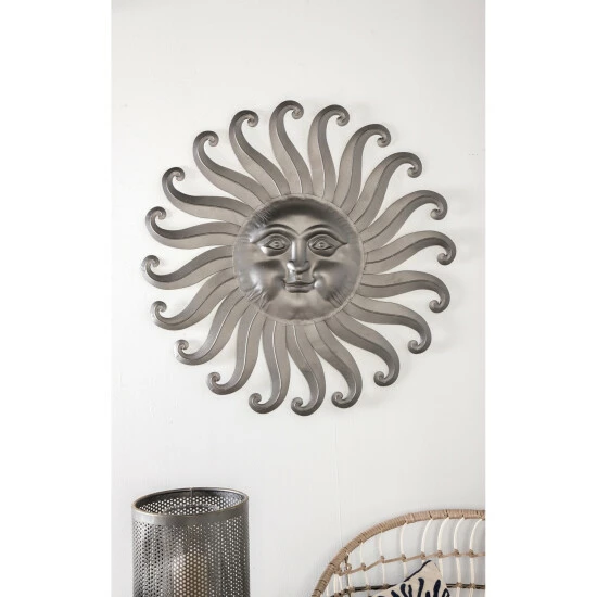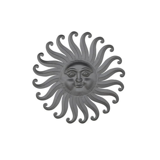Add glamour to your porch with this gorgeous sun wall decor. Crafted from 100% iron material, it features a sun face sculpture in a gray finish. The details are exceptional. It has intricate facial features and scroll-style ray design. With its unique look and neutral color, you can easily blend it with a variety of your outdoor decor. Get this safe-and-easy-to-install sun wall decor now at a price that will surely suit your budget.