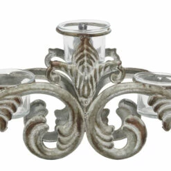 Infuse your space in the romantic candlelight glow that emits from this galvanized metal candle holder. This decorative votive candle holder is a functional piece that can set a relaxing ambiance in your hallway, living room, bedroom, or kitchen. An accent piece that is not only useful but is also great in creating an elegant appearance to your vintage-themed home. It features a candle holder that can accommodate up to five small candles and comes in a gray finish with black highlights. This candle holder paired with votive candles is the perfect combination of a stunning candle arrangement. Made of galvanized iron, this home accent portrays beauty and elegance in your interior decoration. This item comes shipped in 1 carton. Suitable for indoor use only. Vintage inspired. This candelabra type candle holder can accommodate 5 pillar candles.