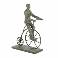 Here is a home interior masterpiece—a polystone cyclist and bicycle sculpture with a rustic metal finish. Use it as a figurine display or paperweight on top of desks, dressers, hanging shelves, countertops, or side tables in traditional offices, home studies, living rooms, or bedrooms. Gifting to cycling and sports fanatics is also an idea to try. It’s 13″ tall with a thin yet sturdy rectangular base for protection and balance. Use it as a figurine display or paperweight on top of desks, dressers, hanging shelves, countertops, or side tables in vintage-inspired offices, home studies, living rooms, or bedrooms. Wipe clean with a dry cloth. Tabletop display doubles as paperweight. Suitable for indoor use only. Traditional style. This item comes shipped in one carton. Polystone sculpture makes a great gift for any occasion.