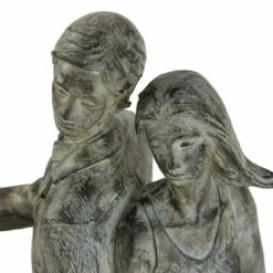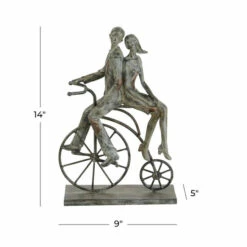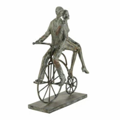 Tabletop sculptures are meant to add drama and character to rather plain pieces of furniture and muted interiors. This couple on a bike figurine does the work by functioning as a noticeable desk accessory and paperweight in traditional and vintage-themed rooms. It stands 13″ high, measures 9″ long, is 5″ wide, and was crafted using polystone. This tabletop decor with a distressed finish is recommended for gifting, home decoration, and souvenir collections. Product is recommended for gifting, home decoration, and souvenir collections. Wipe clean with a dry cloth. Suitable for indoor use only. Traditional style. This item comes shipped in one carton. Polystone sculpture makes a great gift for any occasion.