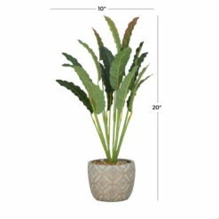 Give your indoor space a refreshing look with this artificial potted traveler’s palm tree that adds a pop of color to vanilla-themed rooms. Add some greenery to your dΓ©cor with no keep up effort with these artificial foliage. Add color and textured to your table top with this artificial plant to freshen up your existing dΓ©cor. This item comes shipped in one carton. A porcelain pot holds this artificial traveler’s palm tree made of PVC. Suitable for indoor use only. Natural design.