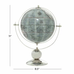 Enhance a traditional-style office or bedroom with adventurous decor. Made in India, this desktop globe reveals Earth in incredible detail, including borders, labels, and lines of latitude and longitude. The frame allows you to tilt the globe to different angles and rotate it to explore the surface. Six inches in width and 11″ in height, this attractive decor rests on a rounded stainless-steel base. Designed with black rubber stoppers at the base that prevent scratching furniture and table tops, as well as sliding around. This item ships in 1 carton. This world globe measures 7″ diameter. Due to the handmade nature of this item, no two will be alike, there will be slight differences in shape, size, and color. Suitable for indoor use only. Made in India. Traditional theme.