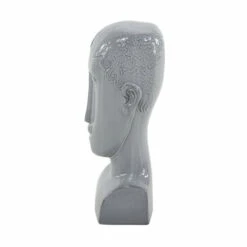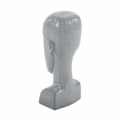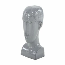- Features a glossy gray-finished man head sculpture with hair, ear, eye, nose, mouth and mustache details