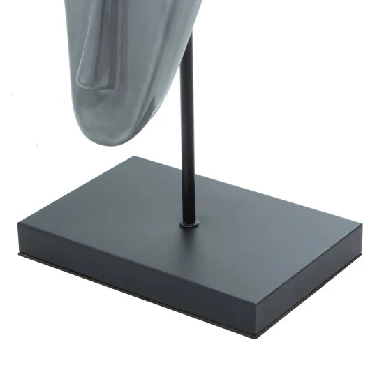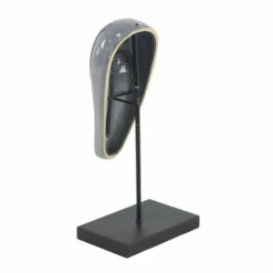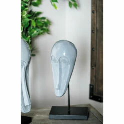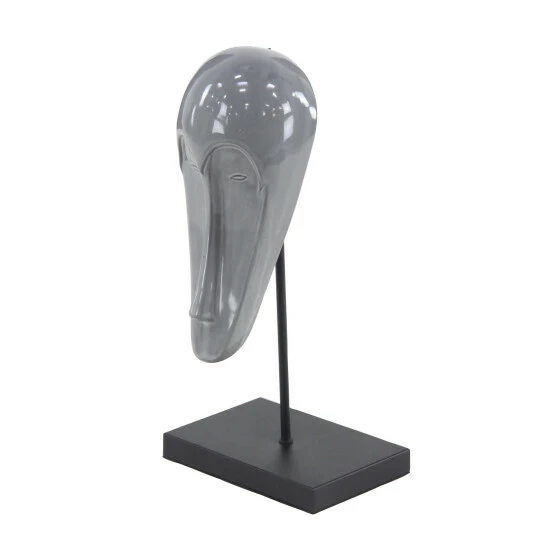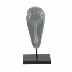 - Glossy gray finish over the long and slender elongated mask sculpture