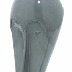 Stir up curiosity in your home with this eclectic style gray stoneware abstract face sculpture crafted for stylish home. This stoneware sculpture features an abstract elongated face resembling something between an African mask design and an Easter Island stone head. The polished neutral gray tone of this piece makes it the perfect choice for a neutral laid-back vibe. This will look great on any table, surface, or shelf in your eclectic inspired living space. This beautiful elongated mask sculpture will create a nice impression in your eclectic style inspired living room when displayed in your living room. Wipe clean with a dry cloth. Suitable for indoor use only. Eclectic design. This item comes shipped in one carton.