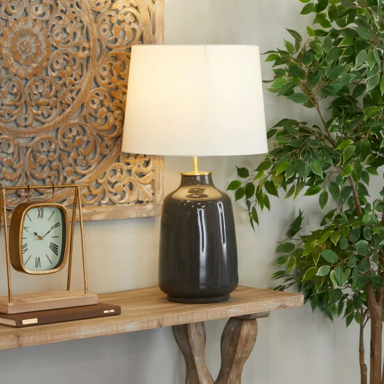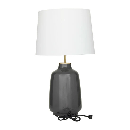 - Gray accent table lamp crafted of robust and long-lasting ceramic, polyester, iron, and plastic materials