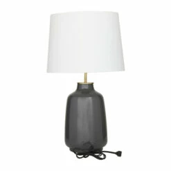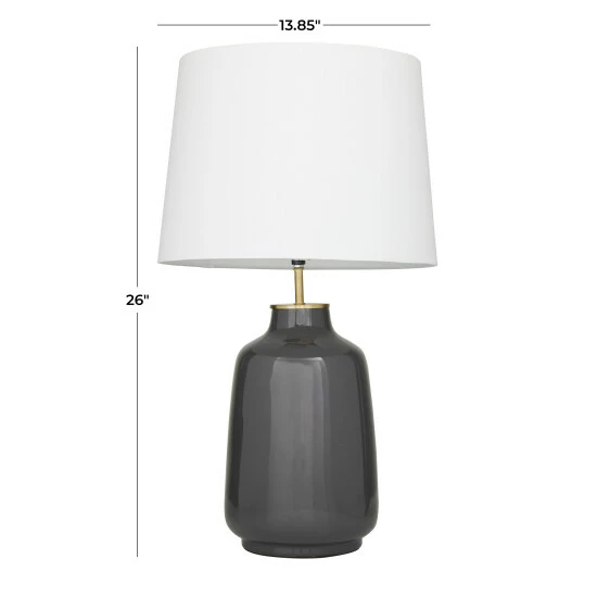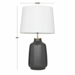 The curved and polished structure of this gray ceramic lamp will surely add a graceful touch to any room and can blend a modern flair with your existing home style. This eye catching lamp makes a charming and chic addition to your surface space and beautifully illuminate its surrounding area. Bring a finishing touch to your home with an inviting appeal with this accent table lamp. Designed with black stopper at the base that prevent sliding around as well as scratching any surface. Comes with 1 socket for medium-sized E26 bulb. Bulb included. Item ships in 1 carton. Cord length measures approximately 68″. Suitable for indoor use only. An accent piece featuring a white drum-shaped polyester shade. Comes with an on/off toggle switch. Modern Inspired.