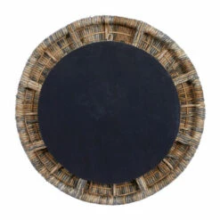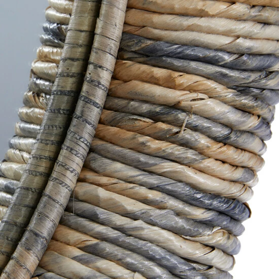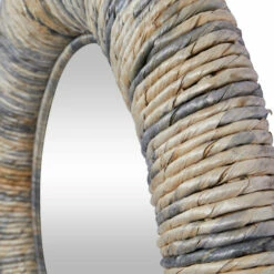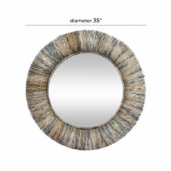 Add a touch of gold luxury in your coastal inspired living space with this round grey temper wall mirror because being laid-back, does not mean you have to sacrifice elegance. This metal wall mirror showcases a unique coiled temper frame forming a cylinder border around its mirror surface. The temper border stirs much curiosity due to its extraordinary concept when it comes to this wall mirror design. This would turn your coastal inspired living space into an instant carefree, yet interesting haven as well. This item comes shipped in one carton. Easy-to-hang feature with its D-ring hardware at the back. Suitable for indoor use only. Made in Indonesia. Coastal design.. Designed with a coastal inspired theme for a calming and relaxing vibe. This round wall mirror is made of high quality teak wood fiber sourced from Indonesia. This extravagant wall mirror comes in a naturally textured gray and cream brown teak wood fiber finish. This captivating wall mirror showcases a stunning 2-tone dried fiber rope design forming a thick framing centered around the round mirror. Wall mirror measures 35″D x 3″W and weighs 15 lbs