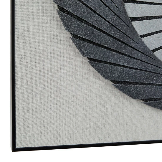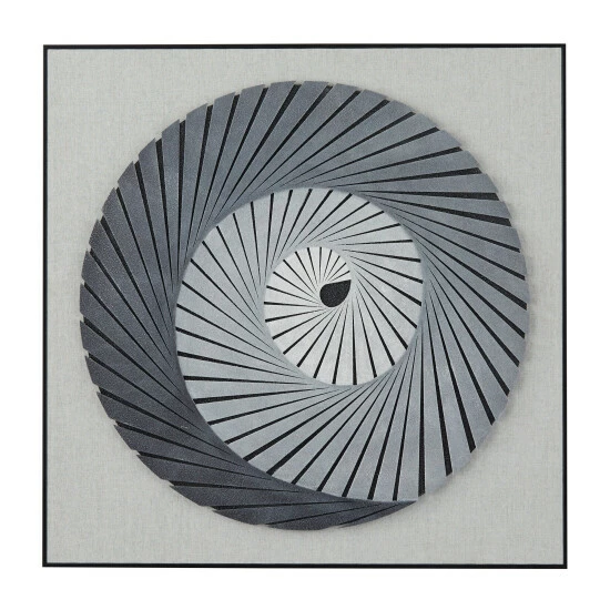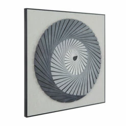 - Our shadow box wall art showcases a wooden framed abstract art display with strips of finely cut 3D plastic in a circular staircase pattern and a plain light gray background