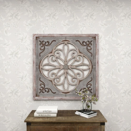 Add a stunning accent to your living space with this classic framed flourish wall decor. Its distressed finishing radiates a rustic-inspired charm, while its flourish details bring a touch of traditional elegance to your wall setting. Crafted from quality wood and iron, this piece is sure to last for years to come. Purchase this lovely flourish wall decor today at a price that won’t hurt your pocket!