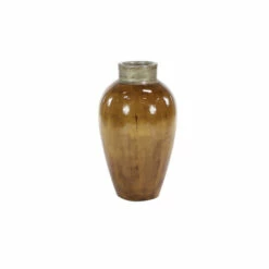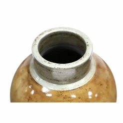 This large floor vase is undeniably bold and elegant with its glossy, textured finish, shining warm beige and light brown hues with dark brown flecks. The unique silver finish with dark brown brush strokes around the narrow rim adds depth and a hint of industrial style. The glaze technique creates an exquisitely unique Vietnamese handicraft that any rustic or natural-styled home would love to have…