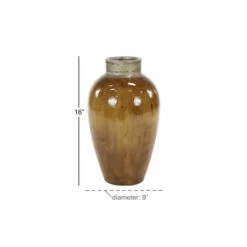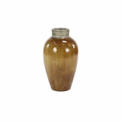 - Handmade: Stoneware that is hand-crafted and glazed multiple times to give a glossy gold and brown wood look over the classic, tapered silhouette; each piece is unique, so texture and glaze design will vary for each ceramic vase
