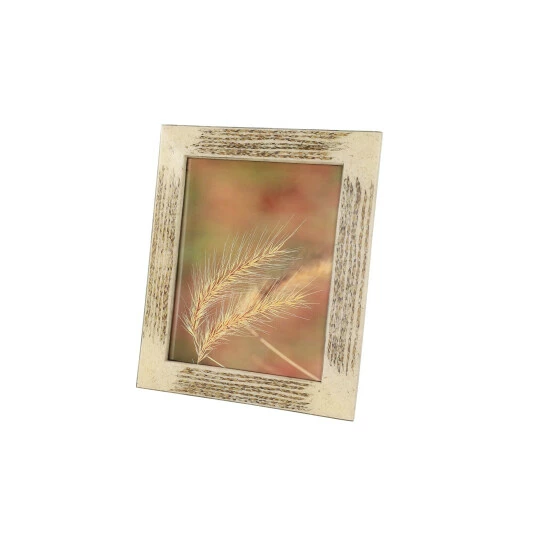 - Unique, organic design: This earthy picture frame holds 8″ x 10″ prints, weighs 1.5 lbs., and is made from hand-placed gold and brown vervain and sentimento grass pieces that look almost like snakeskin strips around the pale beige, textured resin; displays beautifully as an ornamental centerpiece in your foyer on a credenza, living room, or bedroom home decor
