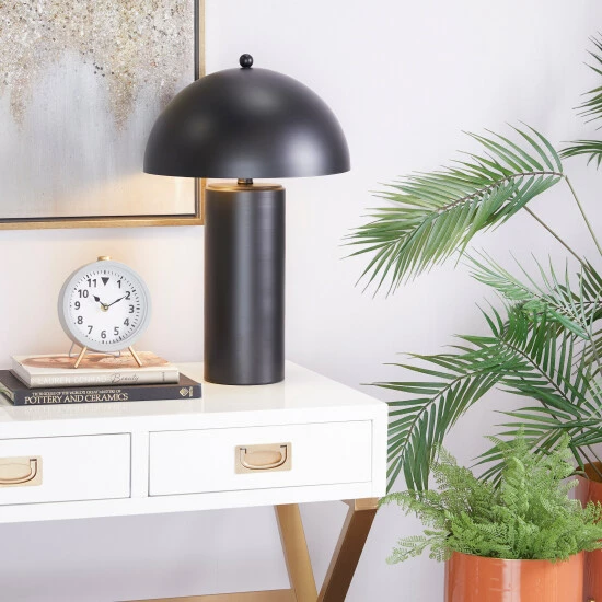 - Accent lamp features a unique mushroom-shape design and a tall cylinder body