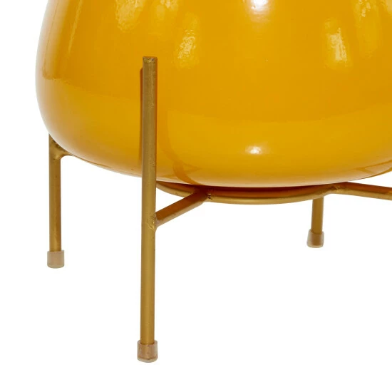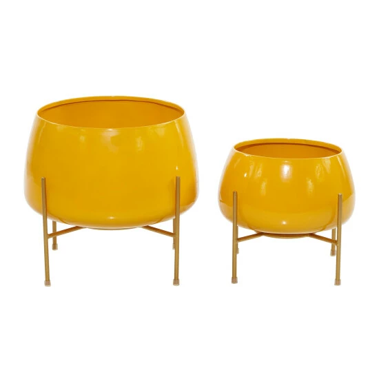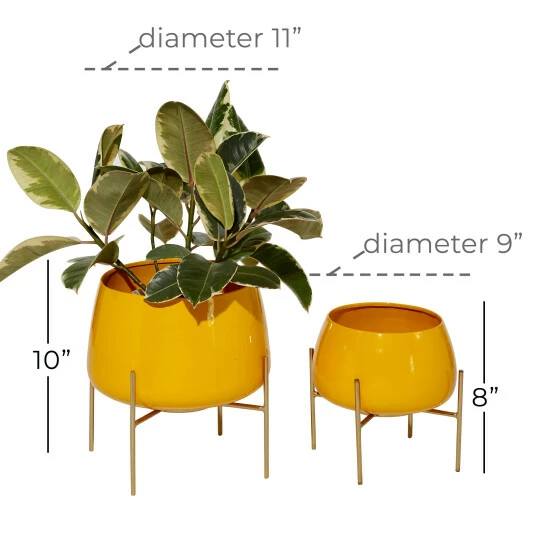 Use the variation in pot size and depth and stand height of this 2-in-1 set of yellow, orange and blue indoor planters to furnish contemporary interiors. Completely iron, no-drainage hole pots, and X-shaped bases make up the solid construction to not disturb the calmness in the corner of your living space. Pots can be used as planters or as accent pieces together or separately. Each piece offers boldness and durability that can jazz up contemporary-themed indoor corners, display them together or separately to showcase your greeneries Wipe clean with a dry cloth. Suitable for indoor and outdoor use. Made in India. No drainage holes. This is a 2-in-1 set of indoor planters with stand. Contemporary design. This item comes shipped in one carton. Planters do not have drainage holes but they are not watertight.