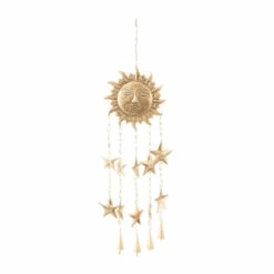 It is a great addition to your home decoration and will surely complement your existing outdoor furniture. A light and delicate piece to create a whimsical atmosphere anywhere in your home. Hang this windchime and greet the sun and the stars together with the sounds of nature. This item comes shipped in one carton. Easily hang to nails or screws with its single ring hook. Suitable for indoor and outdoor use. Made in India. Eclectic theme.