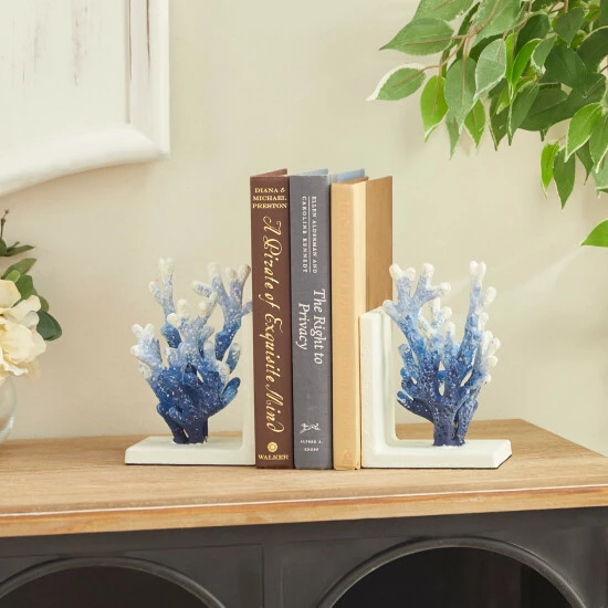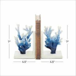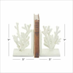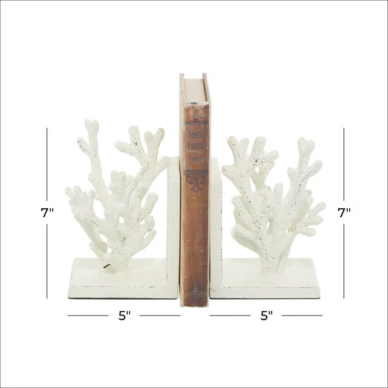 Feel the cool underwater vibe with this distressed coral decorative metal bookend pair. Each bookend flaunts an intricate coral sculpture with distressed finish. The coral sculpture is securely affixed on each book holder’s flat base stand. Placed on your office or library shelves, tables, or consoles, this bookend pair is sure to give a refreshing atmosphere to your coastal-themed spaces. This item comes shipped in 1 carton. Suitable for indoor use only. This set includes of 2 bookends. Farmhouse-themed style.