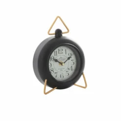 - A desk clock with a well-made iron exterior and a transparent glass face