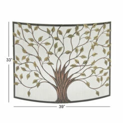 - This tree fireplace screen measures 39″L x 7″W x 33″H and weighs 9.35 lbs