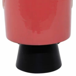 - This planter set features glossy red cylindrical pots with black cup-inspired bases