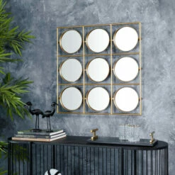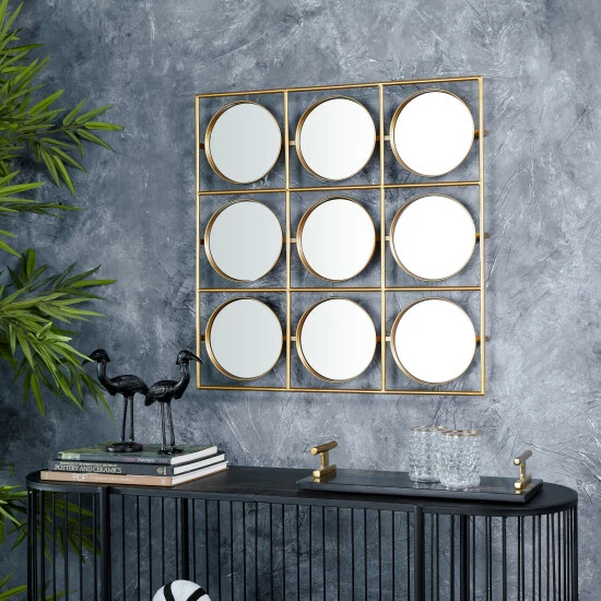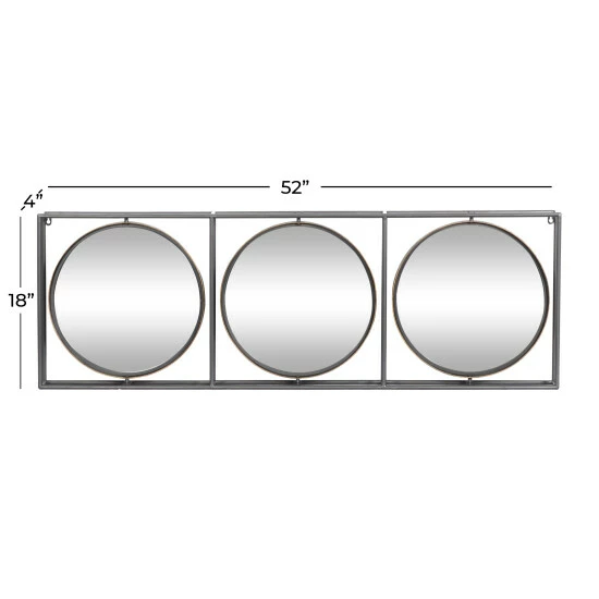 - This minimalist wall mirror features 3 separate round mirror panels in independent compartments