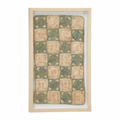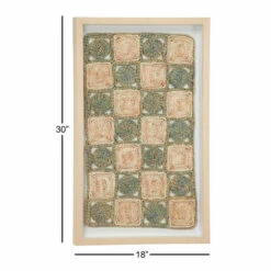 Natural, earth tones are spun throughout this textural, rectangular rope shadow box. Housed in a naturally light beige pine wood frame, this large rectangular wall decor piece displays dimensional spiraled ropes forming a checker board pattern with neutral beige, sage green, and muted Himalayan pink hues. Rich texture and dimension from the shadow box brings natural style and pattern to any wall while the versatile hues work with almost any color palette.