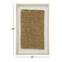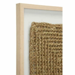 Natural, earth tones are spun throughout this textural, rectangular rope shadow box. Housed in a naturally light beige pine wood frame, this large rectangular wall decor piece displays a dimensional braided and chain linked rope with neutral wheat, beige, and light brown tones. Rich texture and dimension from the shadow box brings natural style to any wall while the versatile hues work with any color palette.