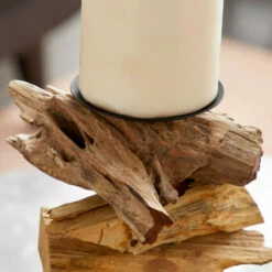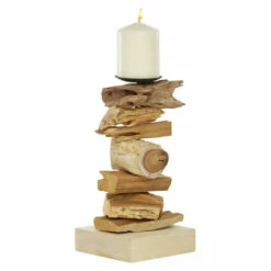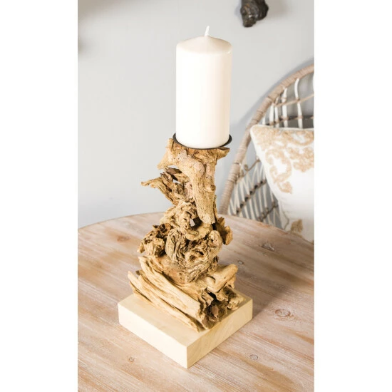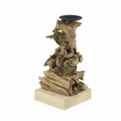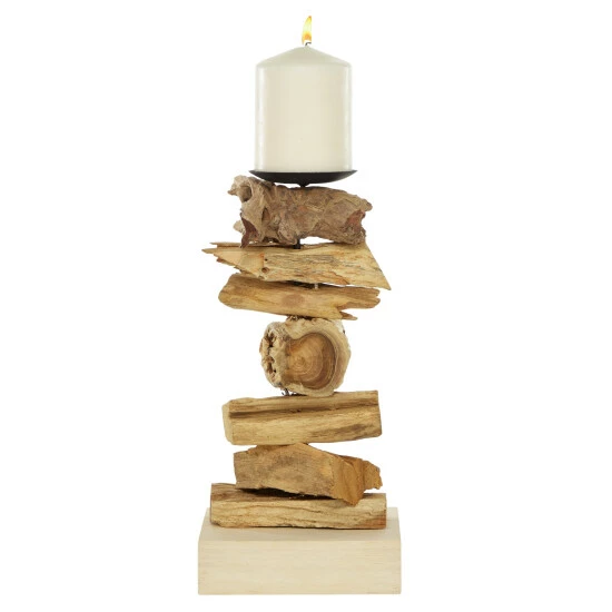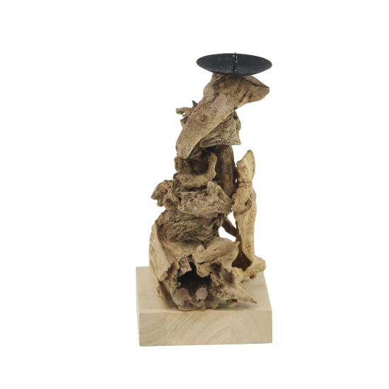 Elevate your candle display with this charming wooden candle holder. This piece highlights a piled driftwood-designed body made from recycled roots in a natural brown finish. It comes with a round, iron candle plate ideal for votive-type candles. Mounted in a beige-finished, block base, this candle holder is a perfect display for your mantel or accent table. Get this decorative piece today for a price you will simply love!