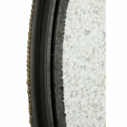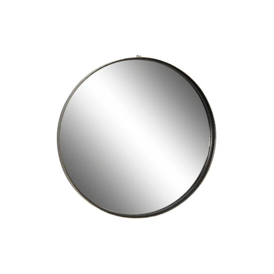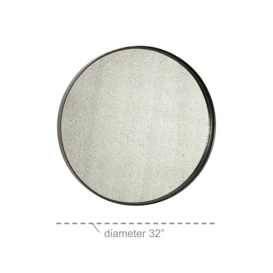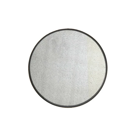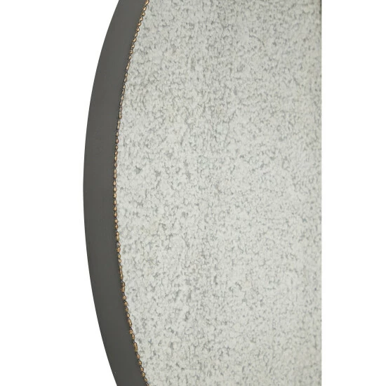 This large, round metal wall mirror features a solid black metal frame with a multi-sized textured bead trim with a metallic gold finish. The ample size of this large wall mirror makes a great accent decor centerpiece in an entryway, living room, or dining room and is easy and ready to hang by the keyhole hardware in the back. The black and gold frame is neutral yet bold with an added dimensional touch from the textural outer trim, complementing both industrial and vintage style spaces.