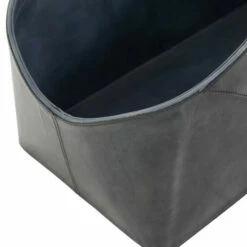 - A modern style magazine holder crafted of real leather and solid wood materials