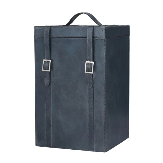 Enjoy your wine or drinks on your next travel with this leather wine bottle holder that comes in a chic and sleek style. Showoff your bottle beverage collection in the most elegant way with this wine holder. Made from sturdy and long lasting material featuring real leather for a chic yet durable design. Suitable for indoor use only. This item comes shipped in one carton. Leather and hair on hide are natural products, and therefore no two will be alike. There may slight variations in pattern, natural blemishes, colors, and overall aesthetic of the product. Made in India. Modern design. This wine holder can contain 4 bottles.