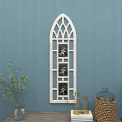 Immortalize precious memories with this distressed whitewashed photo frame displayed on the walls of your vintage-themed home space. It is a great addition to your home decoration and will surely complement your existing furniture. Place this set in your living room, entry way or dining room and to remind you of the good times. This item comes shipped in one carton. Three 5×7 vertical prints. Easy and easy to vertically hang by D-ring hardware in back. Suitable for indoor use only. This 5 x 7 photo wall frame can hold 3 pictures. Vintage inspired.