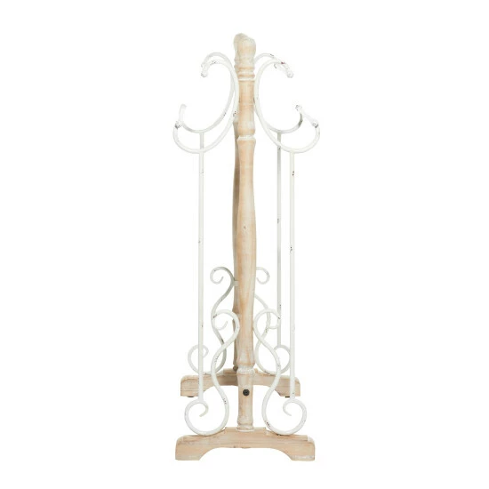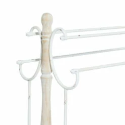 - This stylish rack can hold up to 25 lbs with its wooden body, metal frame, and 2 wide sturdy feet