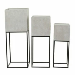 Feature your bold greenery with this set of 3 planters for a modern addition to your home aesthetics. Planter features a deep pot with slender structure making a friendly planter for any compact space. Enhance the mood and the look of your room with some plants in these beautifully designed planter. Shipped in one carton. Suitable for indoor use. These planters has no drainage holes. Set of 3 metal planters. Modern design. Planters do not have drainage holes but they are not watertight.