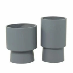 - Our gray, white, red, black, or blue indoor planters showcase a contrasting pair of goblet-inspired pots designed with a short wide-bodied and a tall slim structural form