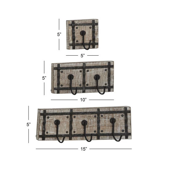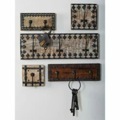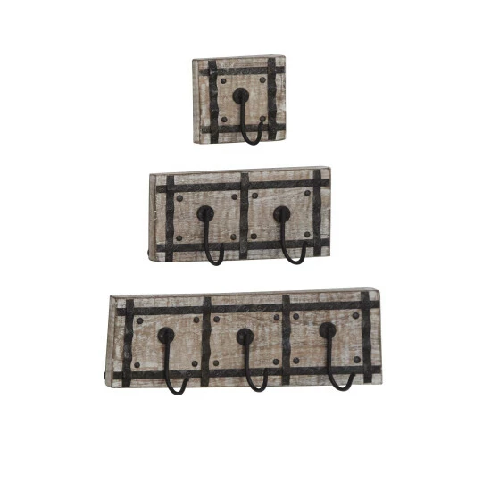 Display your items in a safe and stylish way with this set of framed wall hooks from Studio 350. Can be grouped together or separately for convenience. Made from mango wood and iron, these wall hooks feature square and rectangular panels in a stained brown finish and comes with five dark brown hooks. Highly durable, these wall hooks make a great display option for homes and offices with limited space.