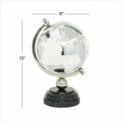 Experience the world in your grasp with our decorative globe with stand! Place this globe on any accent table to show your love for traveling. Embark on an exciting adventure with this world globe Glam Decor. Displayed on the coffee or console tables of your office or living room, entryways or hallways, this globe is an elegant addition to any home. This item ships in two cartons. This decorative globe with stand measures 8″ in diameter. Suitable for indoor use only. Made in India. Glam theme.