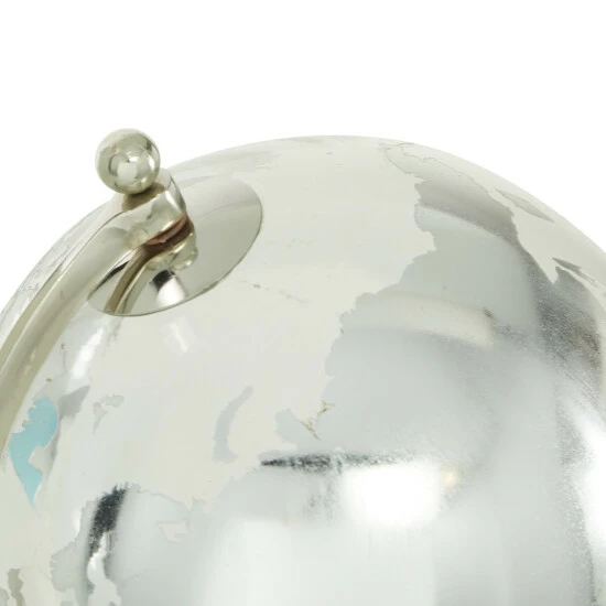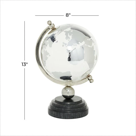 - This glam style accent piece features a glass orb with aluminum axis and stoneware base