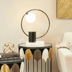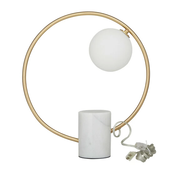 - Accent lamp carries a glossy finish on its white or black marble stand and gold, black, or silver metal ring. White bulb is matte