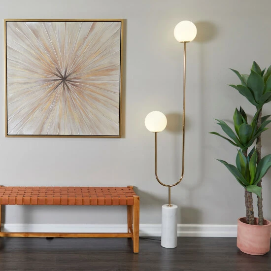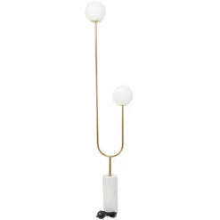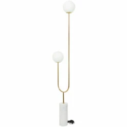 Brighten up any room to create a warming atmosphere for you and your guests with this chic floor lamp. Make a statement with this unique floor lamp on any surface space for a balanced look. Add this modern floor lamp to any corner of your living room or office to brighten up the space. Features 2 sockets for G9/BI-PIN bulbs. LED bulbs included. This item ships in 1 carton. This item has a 89″ cord length. Features two diffused light orb lanterns. Suitable for indoor use only. White glass ball lamp shades measures 7″D. This floor lamp powers via a cord switch and does not require batteries. Marble is a product of nature and no two pieces are exactly alike. It is prone to variations in color and/or patterns in the material that add to the beauty and charm of the piece.. Contemporary style.