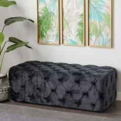 Designed with deep button tufting to avoid any movement or shifts in the velvet fabric. A small piece of furniture that make a big difference to give your home an instance refresh. Create a balanced space in your home for a welcoming and comfortable atmosphere for you and your guests with this bench. Designed with stoppers at the base that prevent scratching as well as sliding around. This accent bench features a velvet fabric seat cushion. Suitable for indoor use only. Maximum weight limit is 400 lbs. Vintage inspired.. The vintage design of this home decor brings a sense of the past to your home. Made of wood and velvet fabric. Comes in a gray finish. Small round feet for stability. This velvet storage bench measures 47″L x 22.50″W x 16″H and weighs 36 lbs