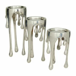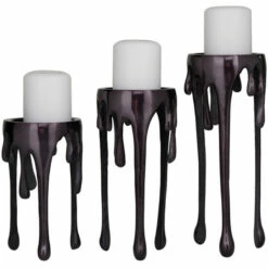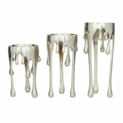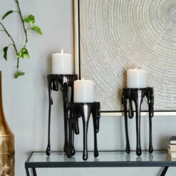 Give your space a radiant illumination with these beautifully crafted candle holders. Made with a sturdy base, it is perfect for creating an elegant atmosphere at your table top or mantel. This pillar candle holder set will look amazing when placed on tables and desks for an opulent captivating look. Holds 1 pillar candle per holder. This item ships in 1 carton. Suitable for indoor use only. Made in India. Comes in a set of 3 candle holders. Contemporary design.