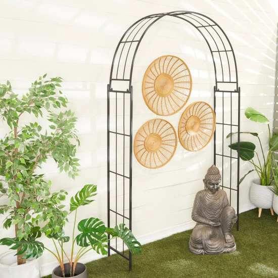 Welcome your guests while flaunting your flowering vines with this arch garden arbor trellis. Make your outdoor space fun and inviting with this stylish garden arbor. A creative way to add a welcoming look with bold design into your outdoor setting. This item comes shipped in one carton. Suitable for indoor and outdoor use. Wipe clean with a dry cloth. Contemporary design.