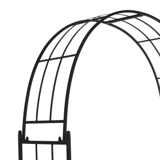 - This garden arch arbor highlights an ebony black overall finish