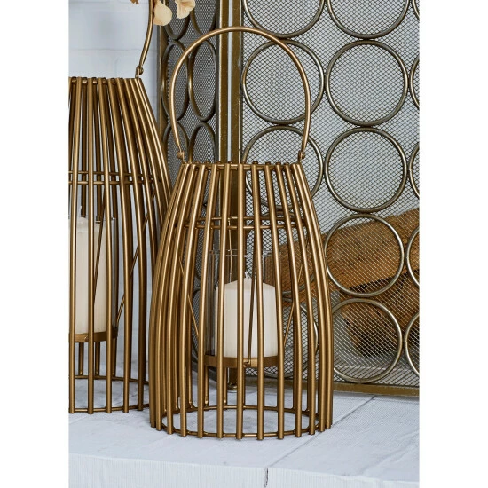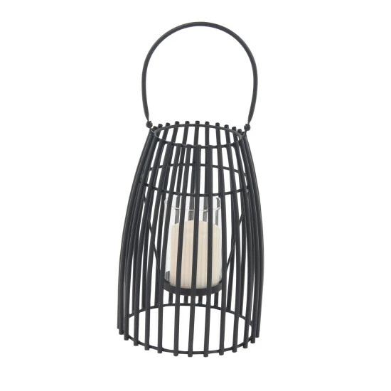 Delight your guests and make any occasion extra special by adding a lighted or flameless candle to this lantern. Made with a sturdy base, it is perfect for creating an elegant atmosphere at your table top or mantel. Display as accent piece on your console of coffee table. This item ships in 1 carton. Metal handle for easy displaying. Suitable for indoor use only. Contemporary design. Lantern candle holder can hold 1 pillar candle.