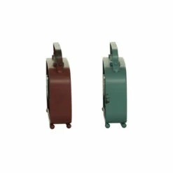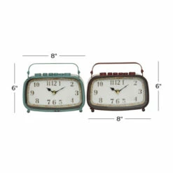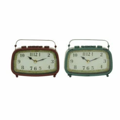 - This metal table clock set includes distressed teal and red or black and white finishes
