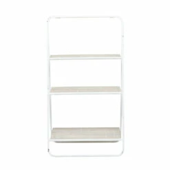 Get organizing in a chic and fashionable style with this white corner ladder shelf placed in any of your home spaces. Utilize your wall space to additional storage any where in your home. Filled with shoes, books, blankets and more, these shelving units are a stylish way to store your belongings. This item comes shipped in one carton. Wooden slats are attached to welded metal folding frame. Suitable for indoor use only. Farmhouse design. Maximum weight limit is 30 lbs each shelf.