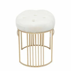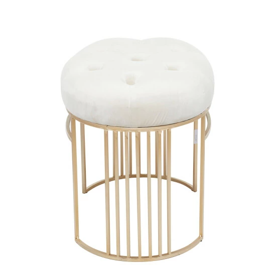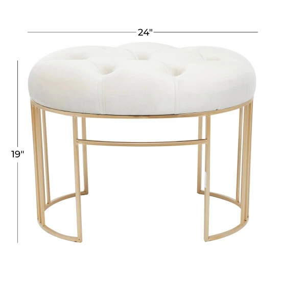 - This Cream, Black, or Grey and Gold accent bench features a soft tufted seat with a sleek open metal frame