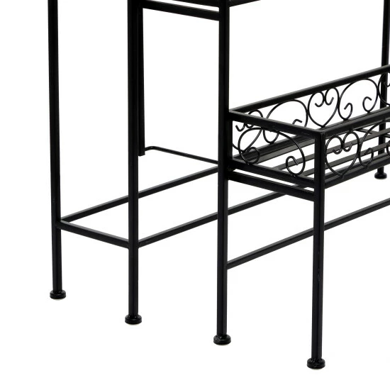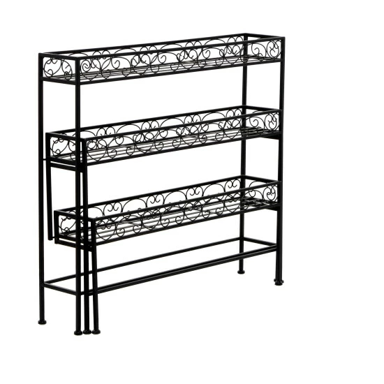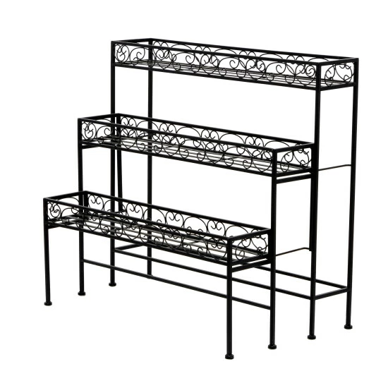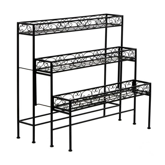 Add a dash of soft visual delight within your outdoor patios and garden areas as you decorate your corners with this 3 tier staircase plant stand. A space saving solution to store your plants in a playful yet practical way. This striking plantstand can hold your luscious greenery or display your most prized décor for an elevated look. Designed with black rubber stoppers at the base that prevent scratching off floors and surfaces. This item comes shipped in one carton. Suitable for indoor and outdoor use. Avoid using abrasive cleaning pads or detergents, use a sponge with mild soap and warm water, then rinse with a garden hose. This plantstand is made from solid iron construction with protective coating making it impervious to the elements with anti-corrosive property. Industrial style.